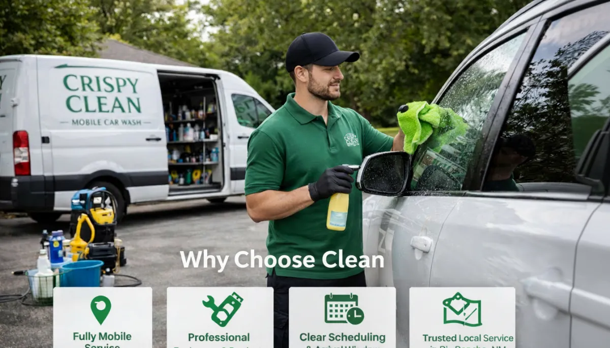 Professional mobile car wash and detailing services delivered to your home or office in Rio Rancho, NM. Proudly serving Albuquerque and Santa Fe.